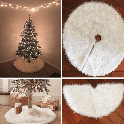 Bela krznena preproga s svojo elegantno zasnovo brez težav ustvari osupljiv zasnežen učinek pod božičnim drevescem. Odlično se ujema z vsemi vrstami božičnih okraskov, zato je vsestranska izbira za vsako božično drevo.