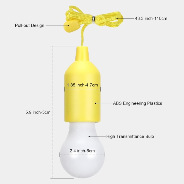 4 LED viseče luči na vrvici, namenjene za notranjo in zunanjo uporabo. Te luči delujejo na baterije in imajo priročno vlečno vrvico, priključeno na stikalo za luč. Te vrvne luči so idealne za osvetlitev in okrasitev prostorov, kot so omare, garaže, dvorišča, verande in stopnice, in so idealne za vse prostore, ki zahtevajo dodatno osvetlitev.