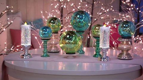 Spreminjanje barv Ko se voda, v kateri so bleščice, premika, jo LED luč s spreminjanjem barv osvetli in ustvari bleščeč prazničen učinek. Barve se počasi menjavajo med zeleno, vijolično, rdečo in modro. Medtem pa umetni plamen gori v oranžni barvi.