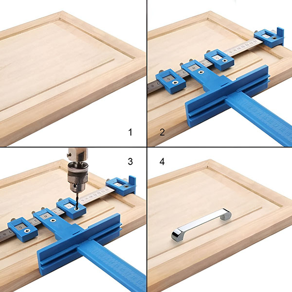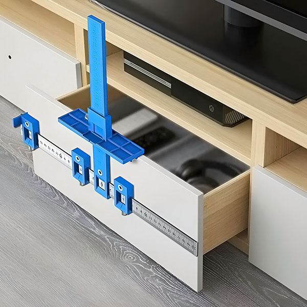Po vrtanju pritrdite strojno opremo (npr. ročaje predalov), da dokončate namestitev s popolnoma poravnanimi luknjami!