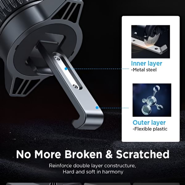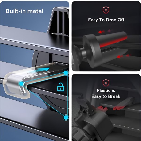 Ima zasnovo zaklepanja, ki je varna pred padcem, s trapezoidnimi objemkami in zgoščenim silikonskim gelom za največjo stabilnost.