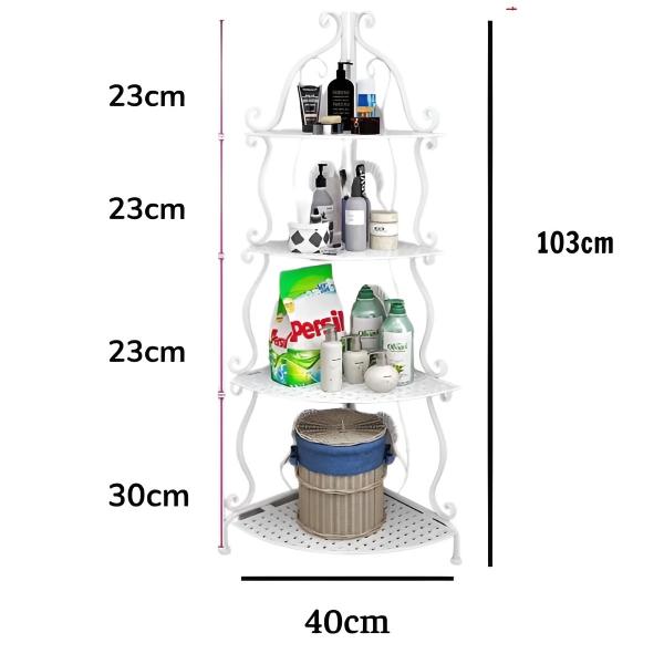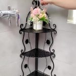 Kotna polica, izdelana iz vrhunskega železa, je trpežna in popolna za vlažne prostore, kot je kopalnica, saj zagotavlja dolgotrajno uporabo.