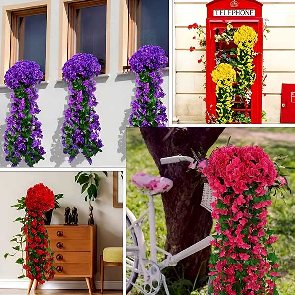 Z našimi realističnimi umetnimi visečimi cvetovi vnesite pridih elegance v vsak prostor. Te viseče rože, izdelane iz izvrstne tkanine, podobne svili, in visokokakovostne plastike, vaši okolici dodajo naravni čar.