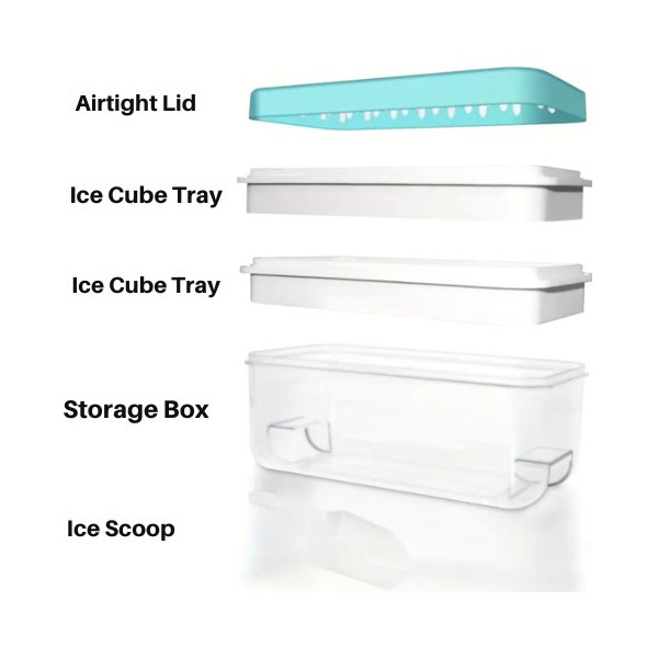 Ko je led pripravljen, preprosto obrnite posodo, pritisnite pokrov in opazujte, kako ledene kocke padejo v posodo. Brez težav, brez nereda.