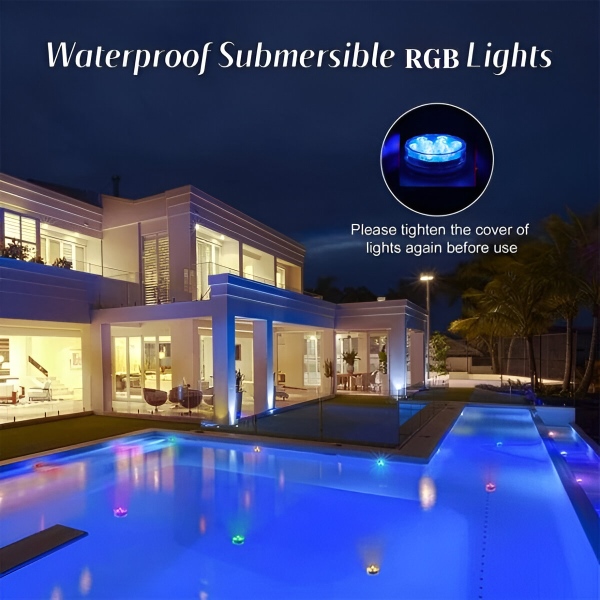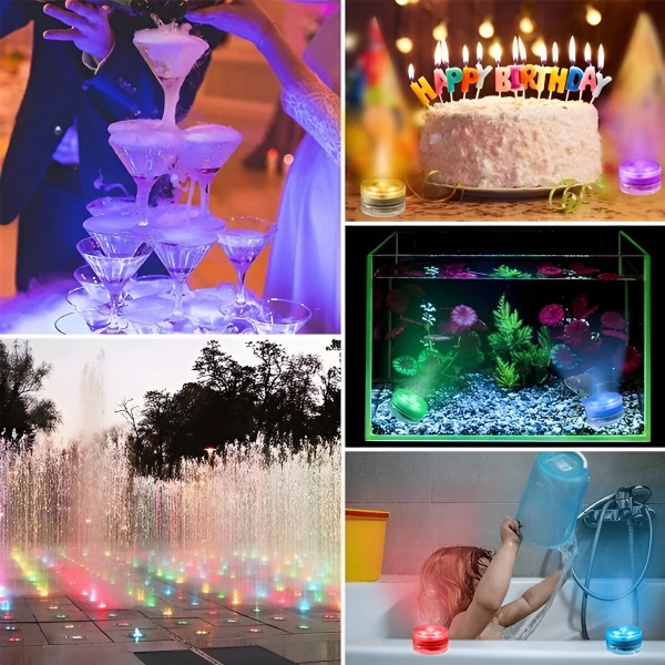 Brez vtikačev, brez isker! Z lahkoto izboljšajte vzdušje v akvariju, posodi za vodo ali vedru za led. Te mini vodne lučke z živahnimi barvami elegantno polepšajo vaš bazen, akvarij, vazo ali katerikoli drugi dekor. Ne glede na to, ali prirejate zabavo ali uživate v mirnem večeru, bodo te vsestranske RGB luči v trenutku povzdignile vaše okolje.