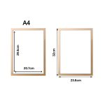 Sprednja plošča iz PP+PVC omogoča jasen in čist pogled na vsak tisk brez popačenj. Velikost za standardne odtise A4 (notranjost: 20,7 x 29,5 cm) – naravnost iz domačega tiskalnika v okvir.