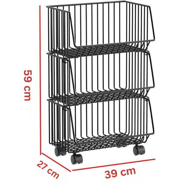 Ohranite zelenjavo, sadje in predmete iz shrambe urejene in na dosegu roke. S tremi nastavljivimi košarami lahko preprosto prilagodite prostor za shranjevanje v kuhinji, hkrati pa ohranite urejen videz.