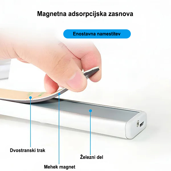 Prilepite ga ob vrata kopalnice ali v notranjost. Ko se približate, se aktivira in zagotovi dovolj svetlobe za nočne obiske brez močne svetlosti zgornjih luči.