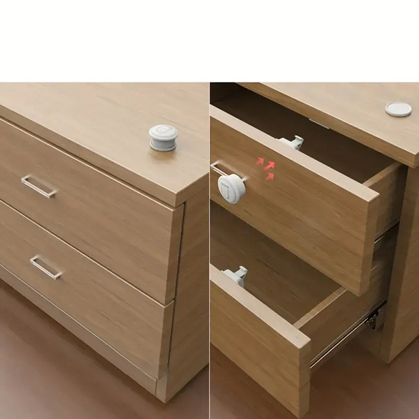 With magnetic keys, you can easily open locked cabinets and drawers. When your little one is away, simply switch to unlock mode with the click of a small lever, disabling the lock function and allowing easy access for adults.