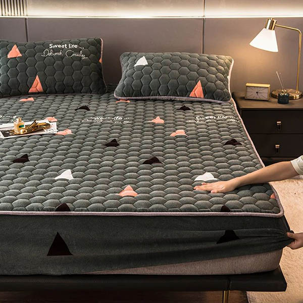 Izboljšajte estetiko svoje spalnice z elegantnimi vzorci. Izbirate lahko med sivo-zeleno s trikotniki ali rožnato s srčki, da se ujemate z vašim osebnim slogom.