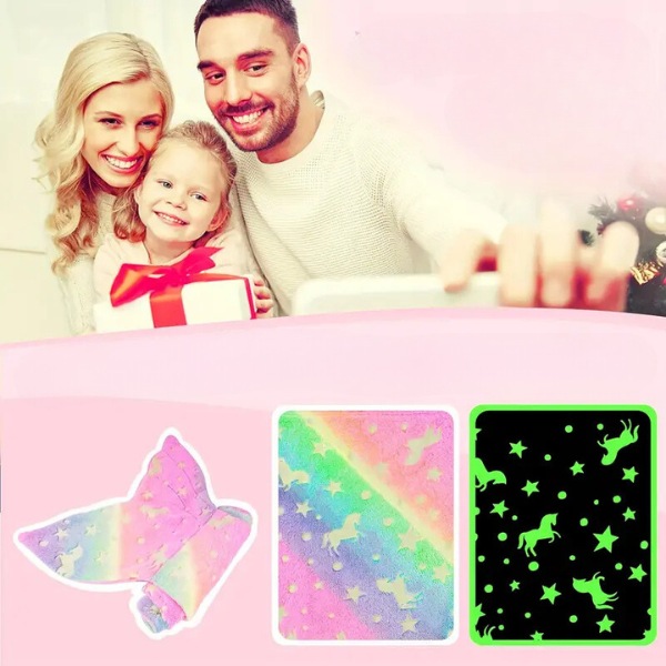 Odejica MERMAIDREAM v sveti v temi ter zagotavlja pomirjujočo svetlobo, ki ublaži nočne strahove. Preprosto jo za 20 minut izpostavite dnevni svetlobi in nežno bo svetila vso noč. Izberite vzorec z repom morskega psa ali morske deklice za dodatno čarobnost med spanjem vašega otroka.