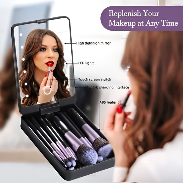 S tem potovalnim kompletom čopičev za ličenje in LED ogledalom lahko uživate v enostavnem in brezhibnem nanosu ličil, kjer koli ste, zato je idealen potovalni spremljevalec.