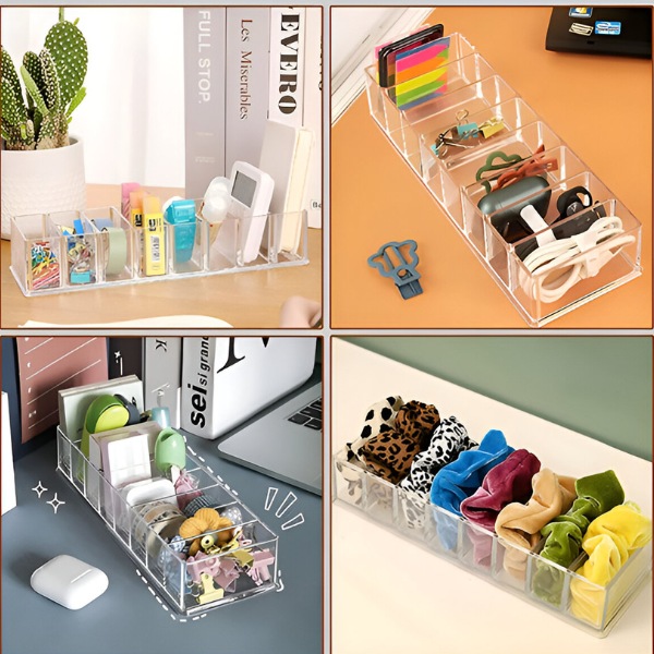 Shranite začimbe, pripomočke ali drobno orodje v te prozorne organizatorje z varnimi pokrovi, ki vaše kuhinjske predmete ohranjajo brez prahu. Namestite jih v omare ali na stene za priročen dostop, da bo priprava obrokov hitrejša in učinkovitejša.