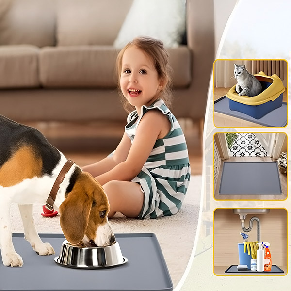 Podloga je izdelana iz trpežnega, nestrupenega silikona in je 100 % varna za vaše hišne ljubljenčke. Njena vodoodporna zasnova ščiti vaša tla pred razlitjem, praskami in madeži ter zagotavlja mirno življenje ob vsakem obroku.