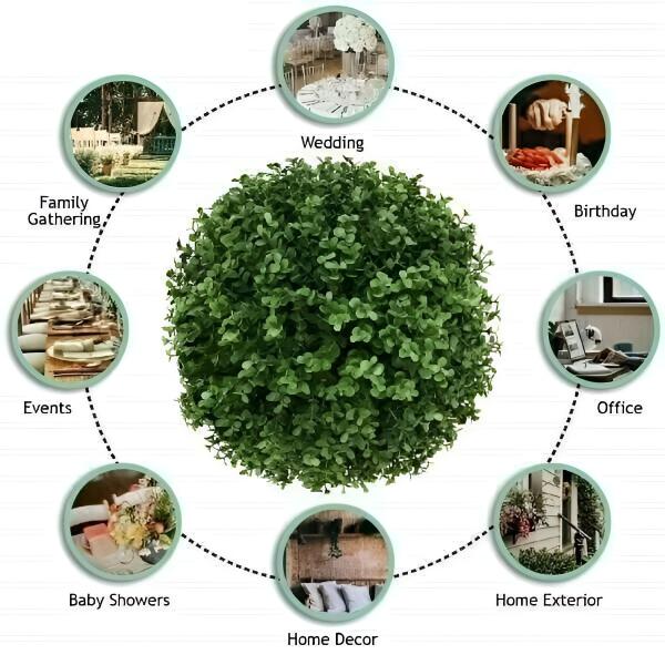 Pozabite na težave z vsakodnevno nego rastlin! Te umetne rastlinske krogle so oblikovane tako, da so videti osupljivo v vsakem okolju, tako v zaprtih prostorih kot na prostem. Uživajte v živahnem zelenju vse leto, ne da bi vas skrbelo, da bi ovenele ali se izsušile. Te okrasne rastlinske krogle so idealne za vrt, teraso, dnevno sobo ali pisarno, saj bodo povzdignile vsako okolje brez kakršnega truda!