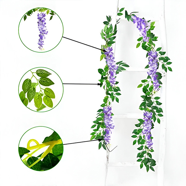 Ste utrujeni od vzdrževanja pravega cvetja, ki ovene in zbledi? WISBLOOM je imitacija cvetov glicinije z listi bršljana, ki v vaš prostor brez težav vnese pridih naravne lepote. Te živahne, realistične viseče rože ostanejo sveže in barvite vde leto, kar zagotavlja da bo vaš vrt ali dom vedno videti osupljivo.