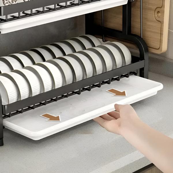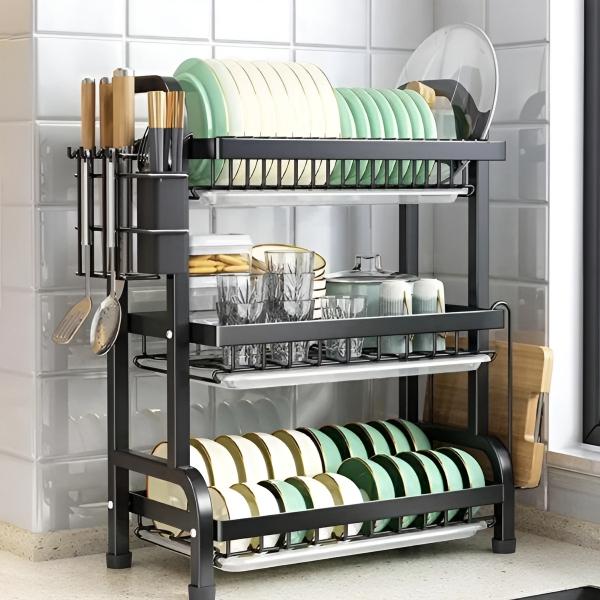 Povečajte svoj kuhinjski prostor z večslojno postavitvijo, ki lahko obvladuje veliko količino posode, hkrati pa zavzame minimalno prostora.