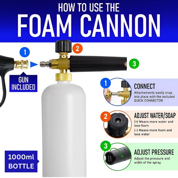 Ta razpršilnik za peno je odličen za številne naloge, od pranja avtomobilov do čiščenja tal, oken in zunanjih površin.